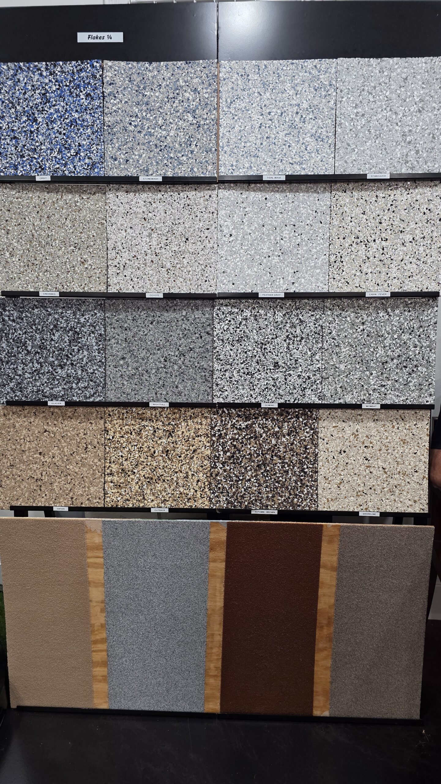 Looking for a tough, attractive, low-maintenance option? Our Epoxy Flake system is perfect for garages, workshops, and commercial spaces. We apply a colored epoxy resin layer with decorative flakes that not only hides imperfections but also creates a non-slip, easy-to-clean, highly durable surface.